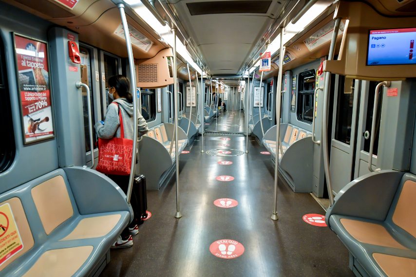 Milano, la nuova segnaletica in metro e alle fermate dei bus per rispettare le distanze di sicurezza