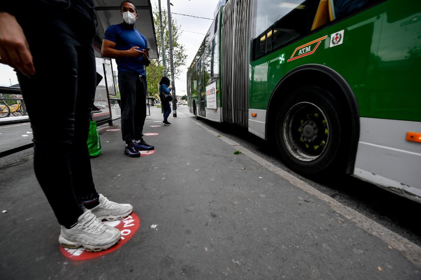 Milano, la nuova segnaletica in metro e alle fermate dei bus per rispettare le distanze di sicurezza
