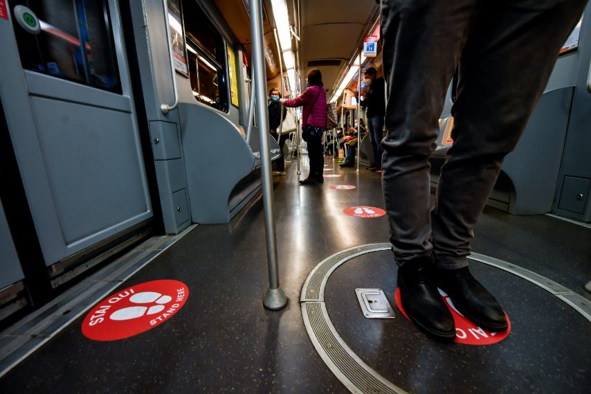 Milano, la nuova segnaletica in metro e alle fermate dei bus per rispettare le distanze di sicurezza