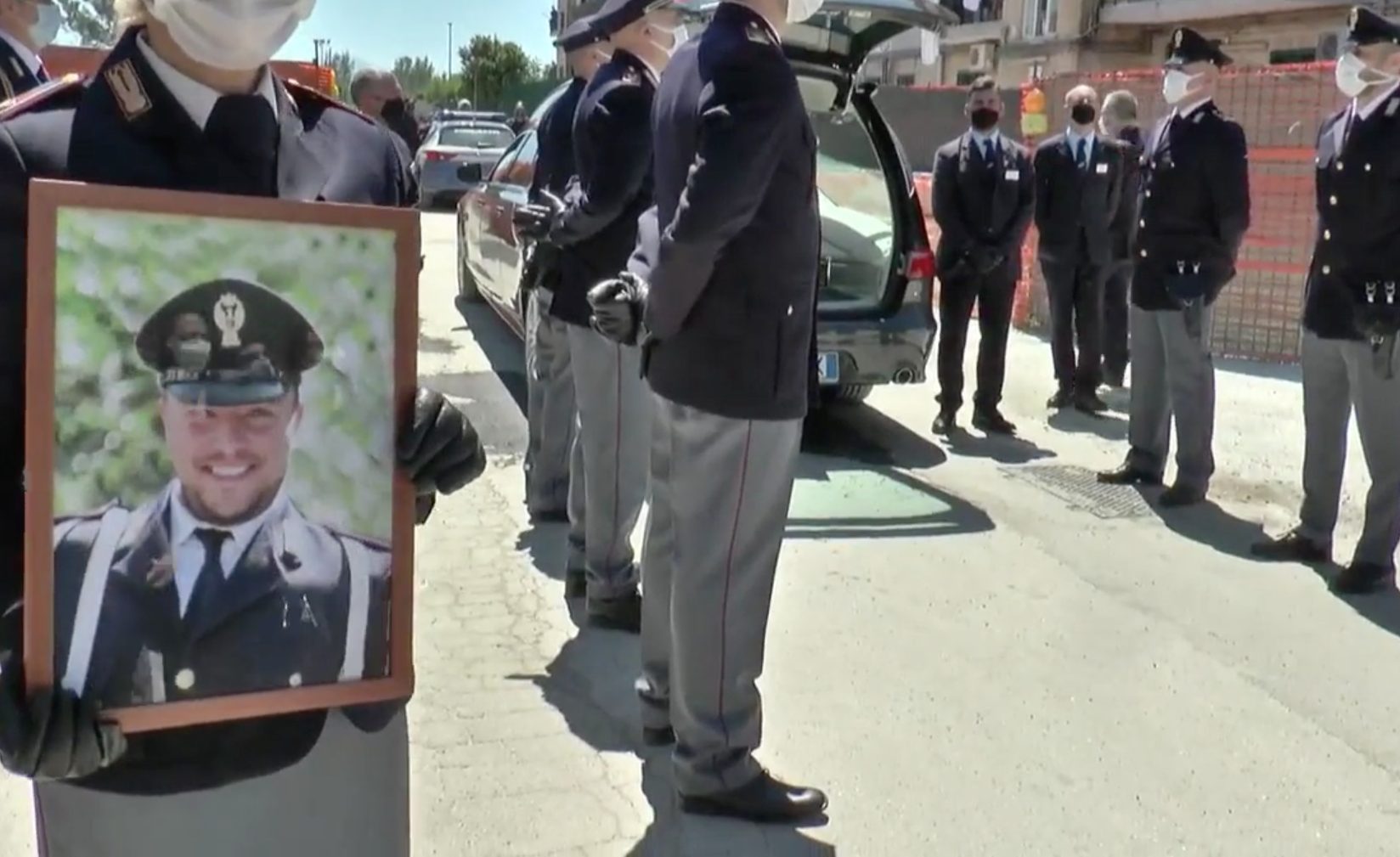 A Secondigliano l'ultimo saluto all'agente scelto Pasquale Apicella, poliziotto del commissariato di Secondigliano, morto a Napoli il 27 aprile scorso, quando l'auto di una banda di criminali in fuga si è schiantata contro la sua volante.