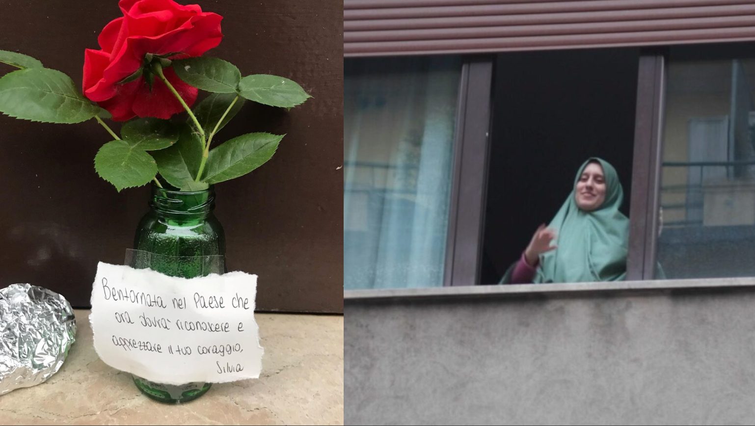 Persone ai balconi e folla in strada: Silvia Romano torna nel suo quartiere, Casoretto, nel milanese e scoppia la festa di abitanti e vicini.