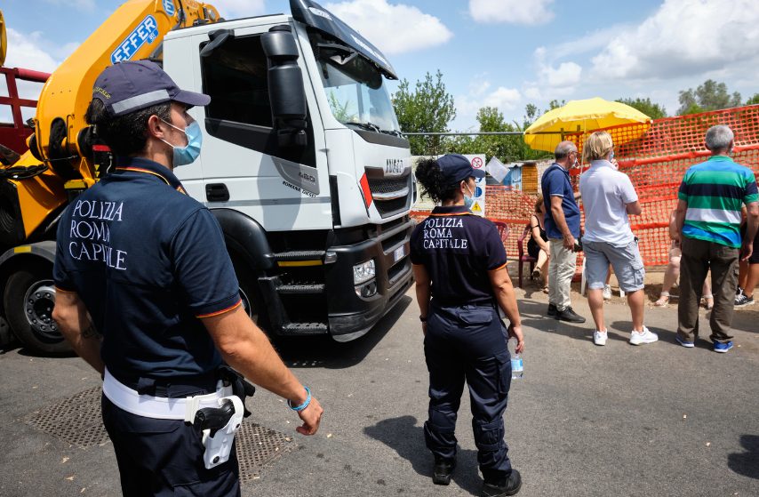 Le immagini mostrano i residenti di Acilia in strada mentre manifestano contro l'istallazione delle antenne 5G.