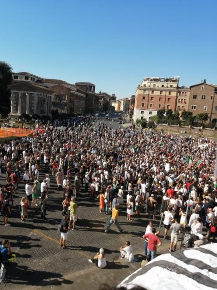 In piazza a Roma centinaia di persone protestano contro le decisioni del governo nella lotta al coronavirus.