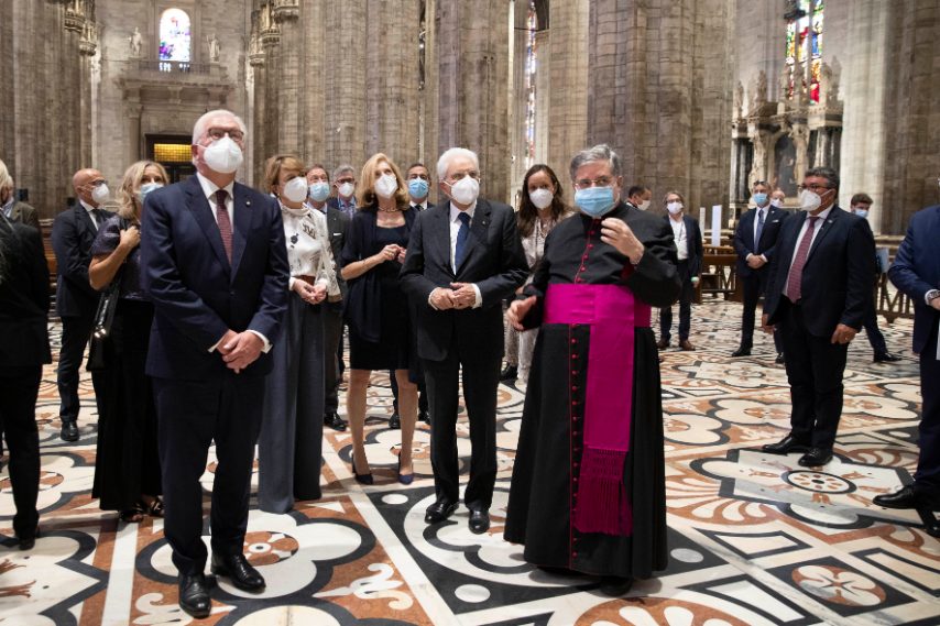 Il presidente della Repubblica, Sergio Mattarella, ha incontrato oggi a Milano il presidente della Repubblica Federale tedesca, Frank-Walter Steinmeier, in visita ufficiale nel capoluogo lombardo. I due capi di Stato si sono hanno avuto un colloquio a Palazzo Reale, quindi hanno  ascoltato le testimonianze di alcuni ex pazienti italiani di Covid che sono stata ospitati nelle strutture sanitarie tedesche e del personale medico. Quindi la visita privata al Duomo e quella all'Hangar Bicocca.