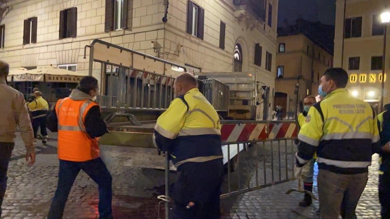 Venerdì 23 ottobre i commercianti di piazza Campo de' Fiori hanno protestato contro l'ordinanza della Regione Lazio che impone il coprifuoco dalle ore 24 alle 5 del giorno seguente, chiudendo in anticipo i locali. Le piazze della Capitale sono deserte.