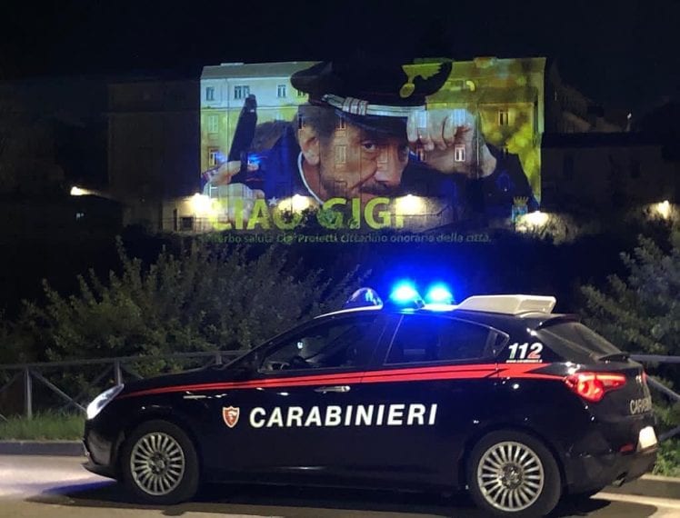 "Buona serata da Viterbo, città ove è stata girata la fiction "Il Maresciallo Rocca", e che rende omaggio a Gigi Proietti". Il post su Instagram è l'omaggio dell'Arma dei Carabinieri all'attore romano scomparso.