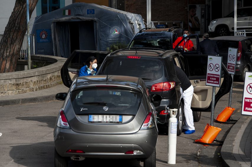 Napoli, nuova fila di automobili davanti all'ospedale Cotugno