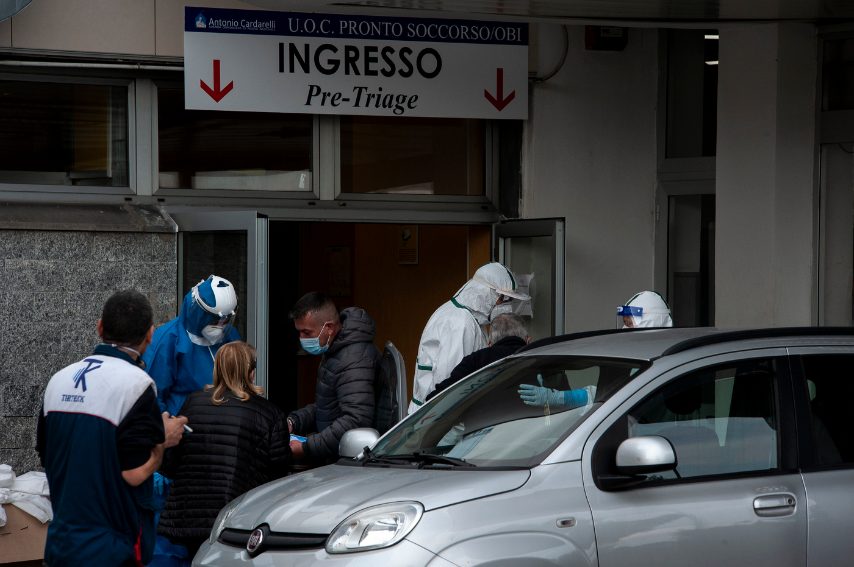 Anche oggi, 14 novembre, lunga fila di automobili privati ed ambulanze all'ospedale Cotugno di Napoli. Da domani, intanto, la Campania diventa zona rossa.