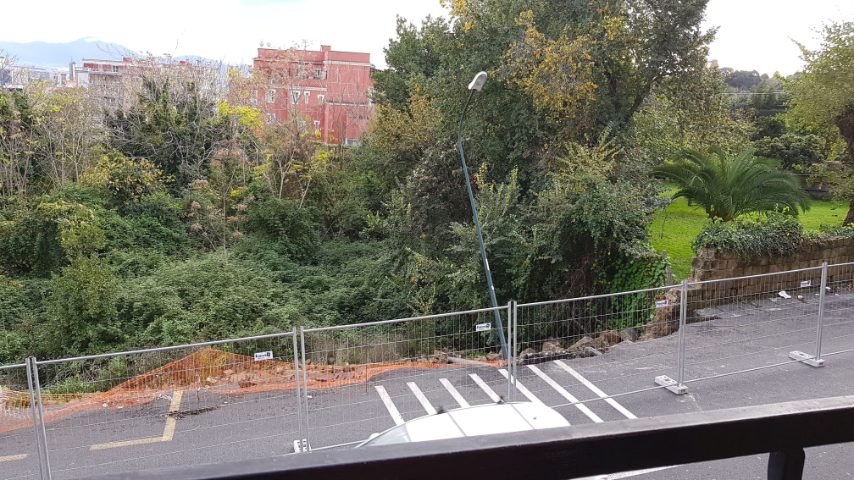 Ponti Rossi, franata la strada: auto e lampioni inghiottiti. Famiglie senza luce