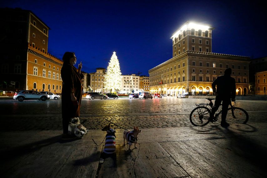 Roma, prove di accensione per l’albero di Natale a piazza Venezia