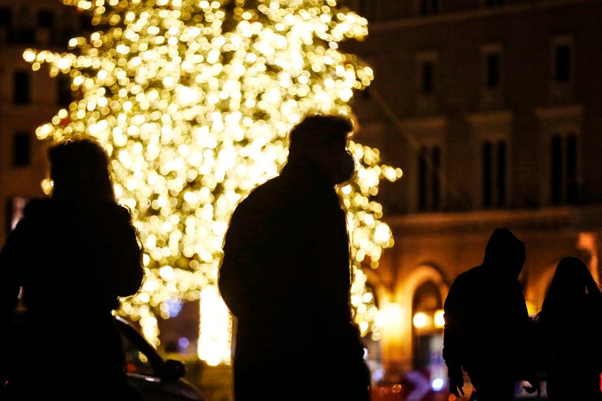 Roma, prove di accensione per l’albero di Natale a piazza Venezia