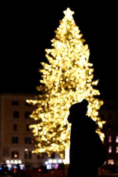 Roma, prove di accensione per l’albero di Natale a piazza Venezia