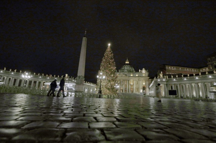 I volontari della Comunità di Sant'Egidio distribuiscono cibo e doni ai senzatetto fuori da Piazza San Pietro,