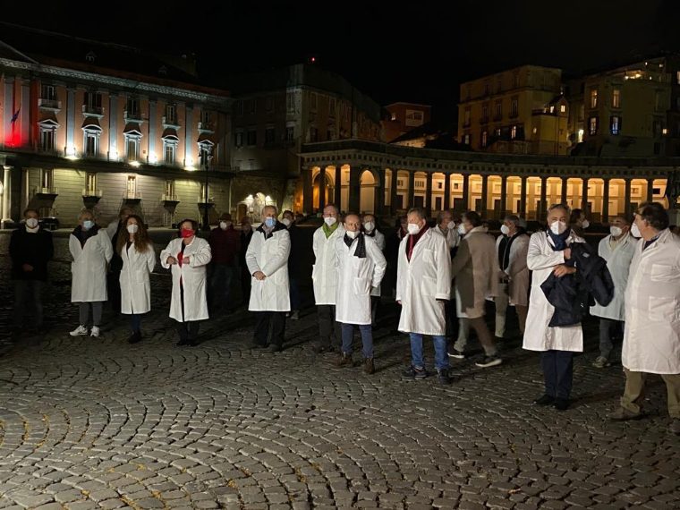 Covid Campania, flash mob in piazza del Plebiscito per ricordare i medici morti