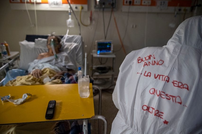 Il personale del reparto di terapia intensiva dell'ospedale San Filippo Neri saluta l'arrivo del 2021.