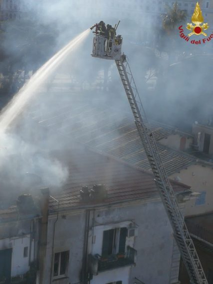 Le fiamme distruggono l'hotel Pavia vicino Termini: l'intervento dei vigili del fuoco