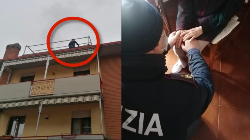 Donna vuole lanciarsi dal terrazzo, poliziotti le parlano e la abbracciano salvandole la vita