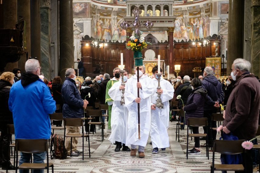 Celebrazione del rito religioso nella Basilica di Santa Maria in Trastevere. La Comunità di Sant'Egidio ricorda i senza fissa dimora che hanno perso la vita in strada questo inverno a causa del freddo