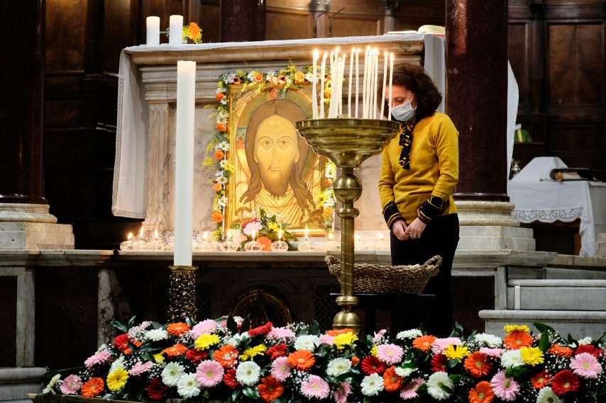 Celebrazione del rito religioso nella Basilica di Santa Maria in Trastevere. La Comunità di Sant'Egidio ricorda i senza fissa dimora che hanno perso la vita in strada questo inverno a causa del freddo