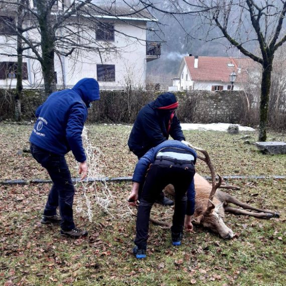 Grazie all'intervento dei veterinari e del personale del Parco Nazionale d'Abruzzo Lazio e Molise, un cervo è stato liberato delle luminarie natalizie che si erano intrecciate nelle sue corna. Era da parecchi giorni che girava così a Villetta Barrea (AQ). Già nei giorni scorsi si era tentato di aiutarlo ma senza successo, in quanto l'animale riusciva a fuggire o perché si trovava in luogo non adatto per svolgere le operazioni in totale sicurezza. l'animale è lo stesso che, poco meno di un mese fa, era stato liberato con un intervento analogo dopo essersi impigliato tra le luminarie di un albero addobbato per le festività natalizie.
