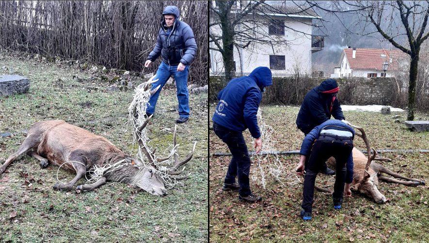 Grazie all'intervento dei veterinari e del personale del Parco Nazionale d'Abruzzo Lazio e Molise, un cervo è stato liberato delle luminarie natalizie che si erano intrecciate nelle sue corna. Era da parecchi giorni che girava così a Villetta Barrea (AQ). Già nei giorni scorsi si era tentato di aiutarlo ma senza successo, in quanto l'animale riusciva a fuggire o perché si trovava in luogo non adatto per svolgere le operazioni in totale sicurezza. l'animale è lo stesso che, poco meno di un mese fa, era stato liberato con un intervento analogo dopo essersi impigliato tra le luminarie di un albero addobbato per le festività natalizie.
