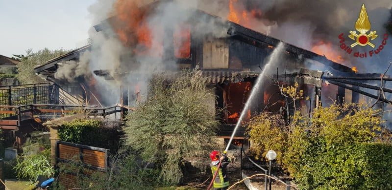 Le fiamme distruggono una villa a Casal Paolocco: le operazioni dei vigili del fuoco