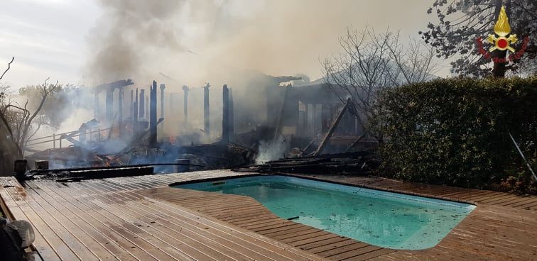 Le fiamme distruggono una villa a Casal Paolocco: le operazioni dei vigili del fuoco