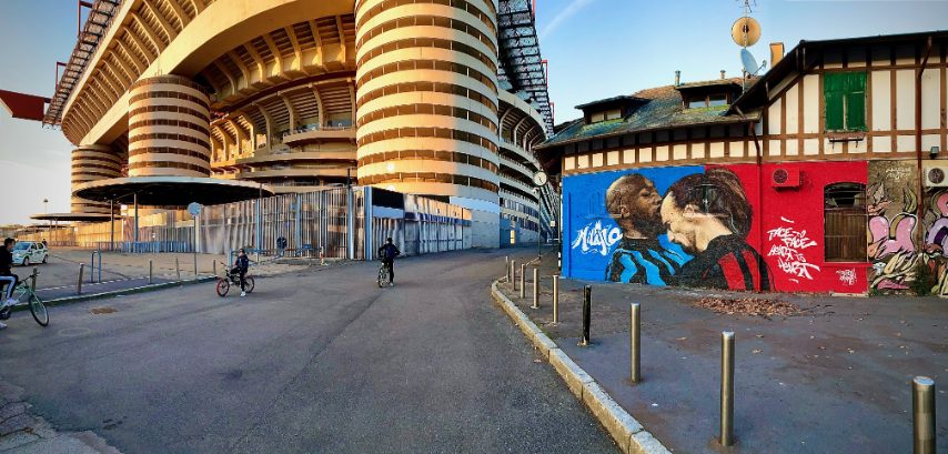 Accanto allo stadio di San Siro è comparso un murale dedicato allo "scontro tra titani" che ha visto protagonisti qualche settimana fa i due attaccanti e leader delle squadre milanesi, Romelu Lukaku e Zlatan Ibrahimovic.