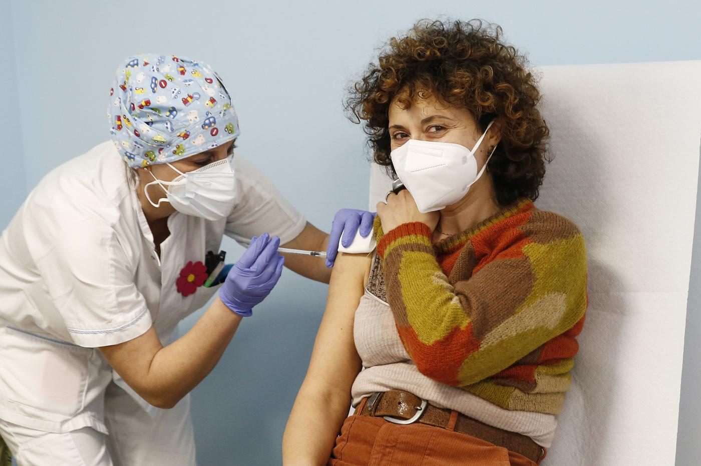 Inizio della campagna vaccinale anti covid per il personale scolastico docente e non docente. Nelle immagini il polo vaccinale allestito a Fiumicino aeroporto dove oltre agli insegnanti si contentano le vaccinazioni delle altre categorie