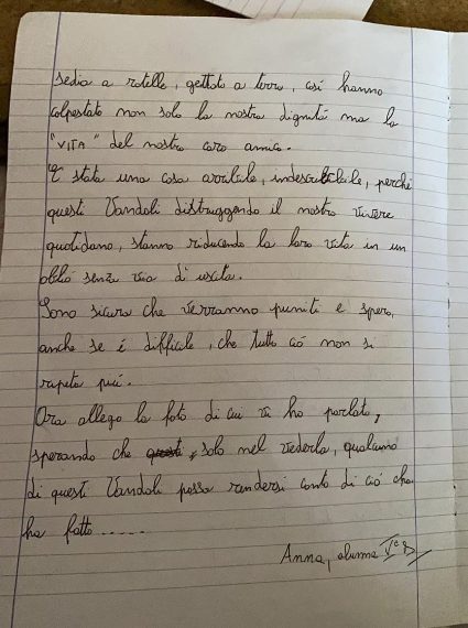 Le lettere aperte dei piccoli alunni della scuola "Giulio Rodinò" di Ercolano, in provincia di Napoli. "Vergognatevi, vandali".