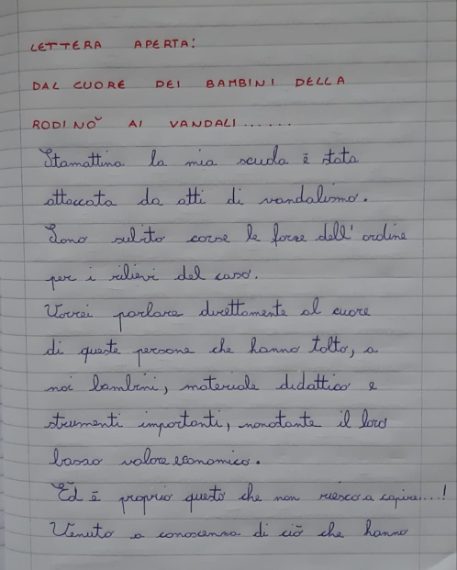 Le lettere aperte dei piccoli alunni della scuola "Giulio Rodinò" di Ercolano, in provincia di Napoli. "Vergognatevi, vandali".