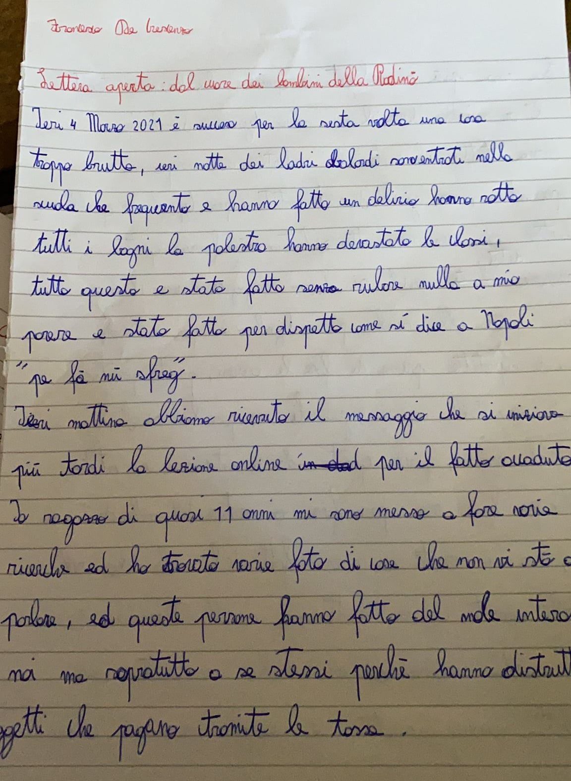 Le lettere aperte dei piccoli alunni della scuola "Giulio Rodinò" di Ercolano, in provincia di Napoli. "Vergognatevi, vandali".