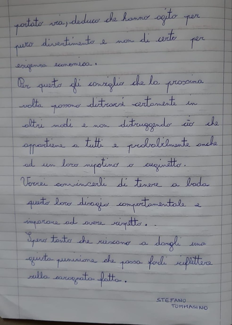 Le lettere aperte dei piccoli alunni della scuola "Giulio Rodinò" di Ercolano, in provincia di Napoli. "Vergognatevi, vandali".