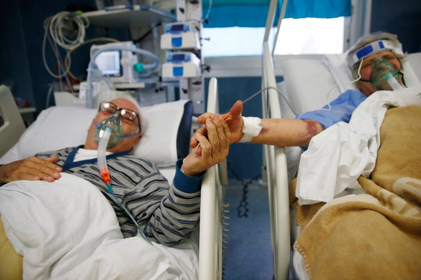Moglie e marito si incontrano nel reparto Covid e si tengono per mano