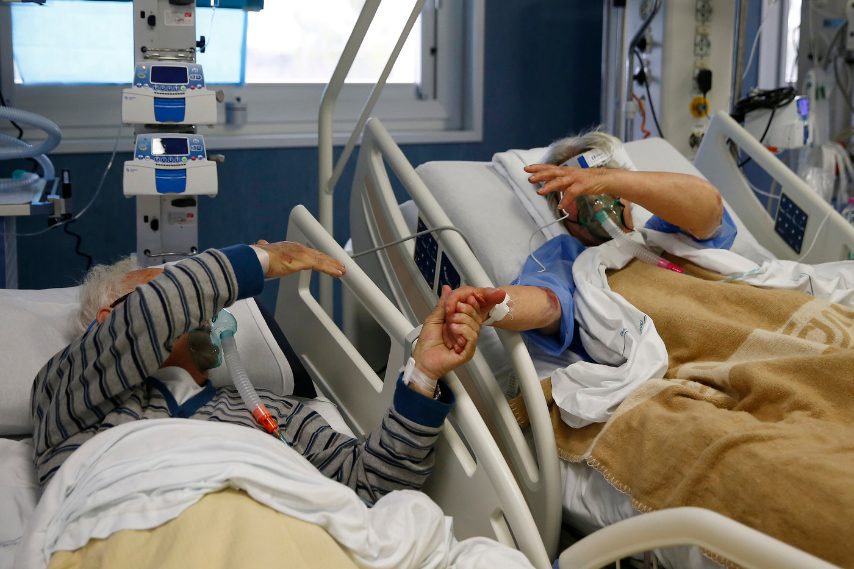 Moglie e marito si incontrano nel reparto Covid e si tengono per mano