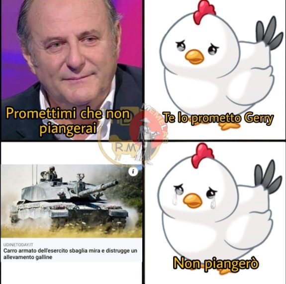 Carro armato spara su allevamento di polli a Pordenone durante l'esercitazione militare. Il web esplode ed è subito gara al meme più divertente.