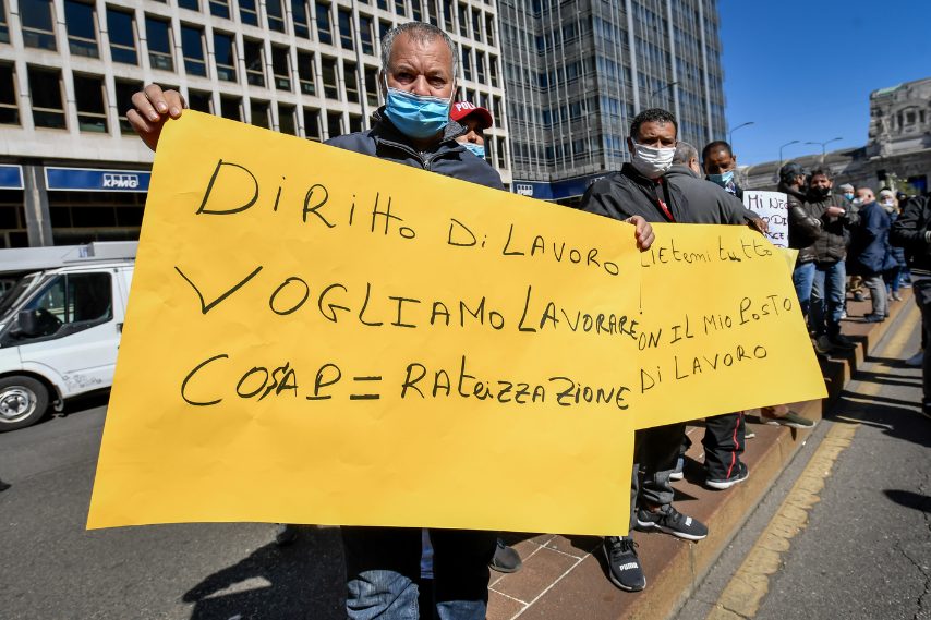 Le immagini della protesta dei venditori ambulanti contro le misure restrittive dei dcpm, bloccata la circolazione nei pressi della Stazione Centrale