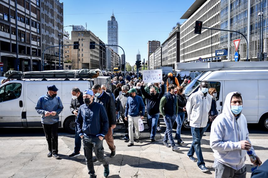 Le immagini della protesta dei venditori ambulanti contro le misure restrittive dei dcpm, bloccata la circolazione nei pressi della Stazione Centrale