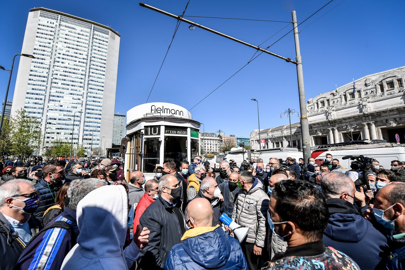 Le immagini della protesta dei venditori ambulanti contro le misure restrittive dei dcpm, bloccata la circolazione nei pressi della Stazione Centrale
