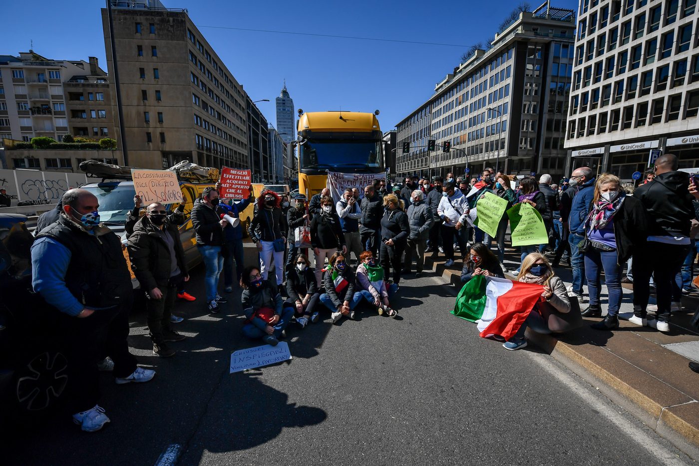 Le immagini della protesta dei venditori ambulanti contro le misure restrittive dei dcpm, bloccata la circolazione nei pressi della Stazione Centrale