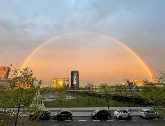 Un arcobaleno bellissimo ha fatto la sua apparizione durante il tramonto a Milano lasciando tutti col naso all'insù per qualche minuto.