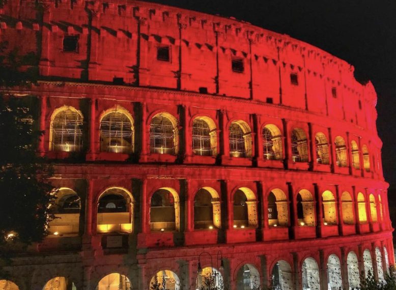 Colosseo illuminato di rosso per la "Giornata mondiale dei donatori di sangue 2021"