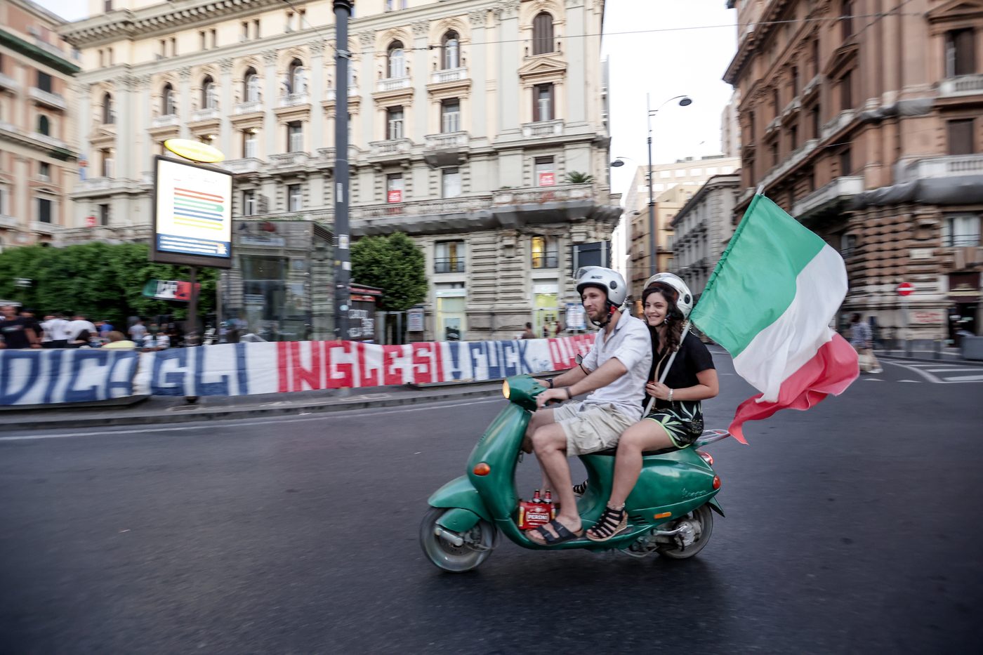 Grande festa a Napoli per la vittoria dell'Italia all'Europeo del 2020. Folla sul Lungomare di via Caracciolo, in piazza del Plebiscito e in tutte le strade del Centro Storico.