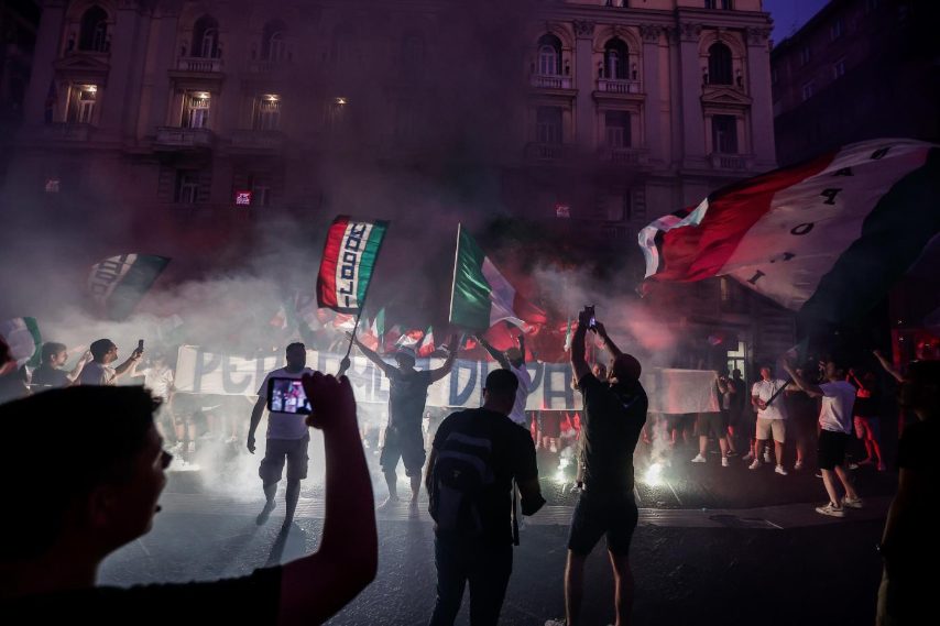 Grande festa a Napoli per la vittoria dell'Italia all'Europeo del 2020. Folla sul Lungomare di via Caracciolo, in piazza del Plebiscito e in tutte le strade del Centro Storico.
