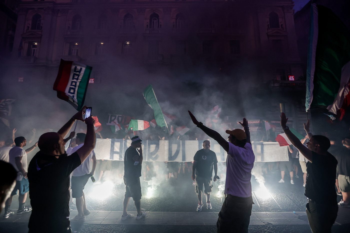 Grande festa a Napoli per la vittoria dell'Italia all'Europeo del 2020. Folla sul Lungomare di via Caracciolo, in piazza del Plebiscito e in tutte le strade del Centro Storico.