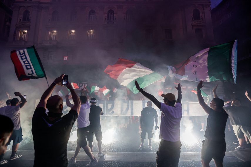 Grande festa a Napoli per la vittoria dell'Italia all'Europeo del 2020. Folla sul Lungomare di via Caracciolo, in piazza del Plebiscito e in tutte le strade del Centro Storico.