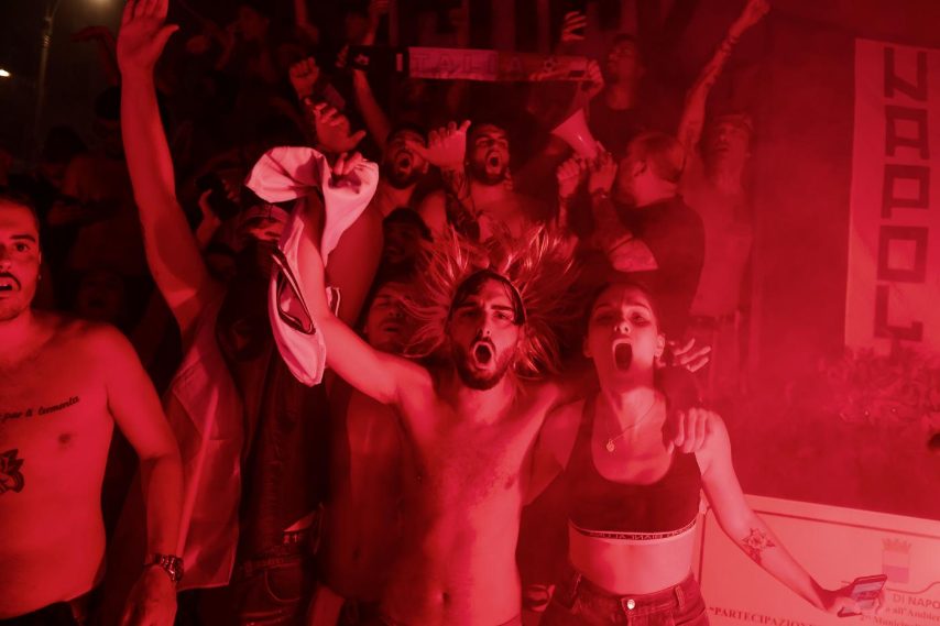 Grande festa a Napoli per la vittoria dell'Italia all'Europeo del 2020. Folla sul Lungomare di via Caracciolo, in piazza del Plebiscito e in tutte le strade del Centro Storico.