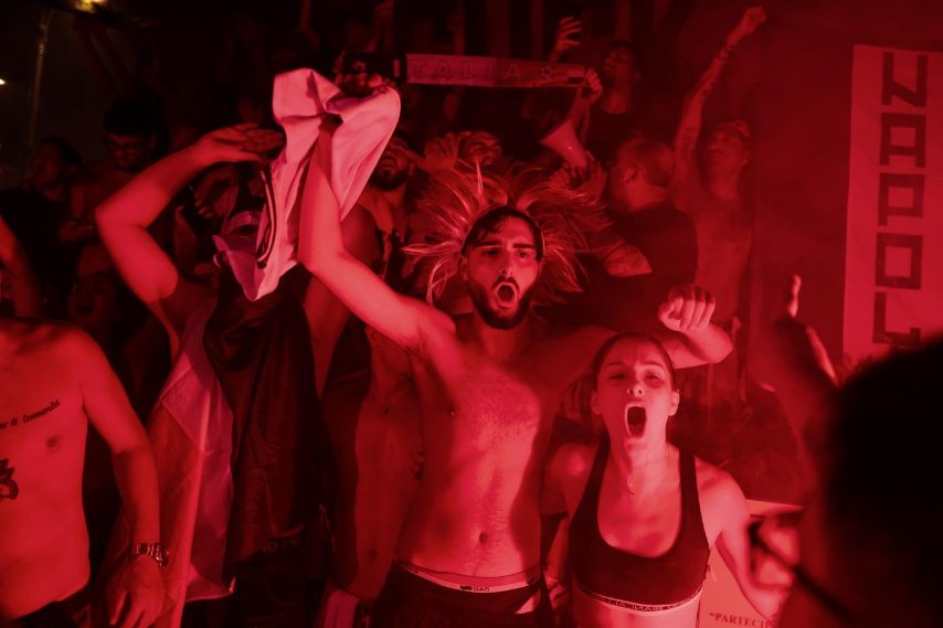 Grande festa a Napoli per la vittoria dell'Italia all'Europeo del 2020. Folla sul Lungomare di via Caracciolo, in piazza del Plebiscito e in tutte le strade del Centro Storico.
