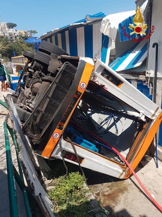 Capri, autobus di linea precipita in scarpata: le foto dei soccorsi