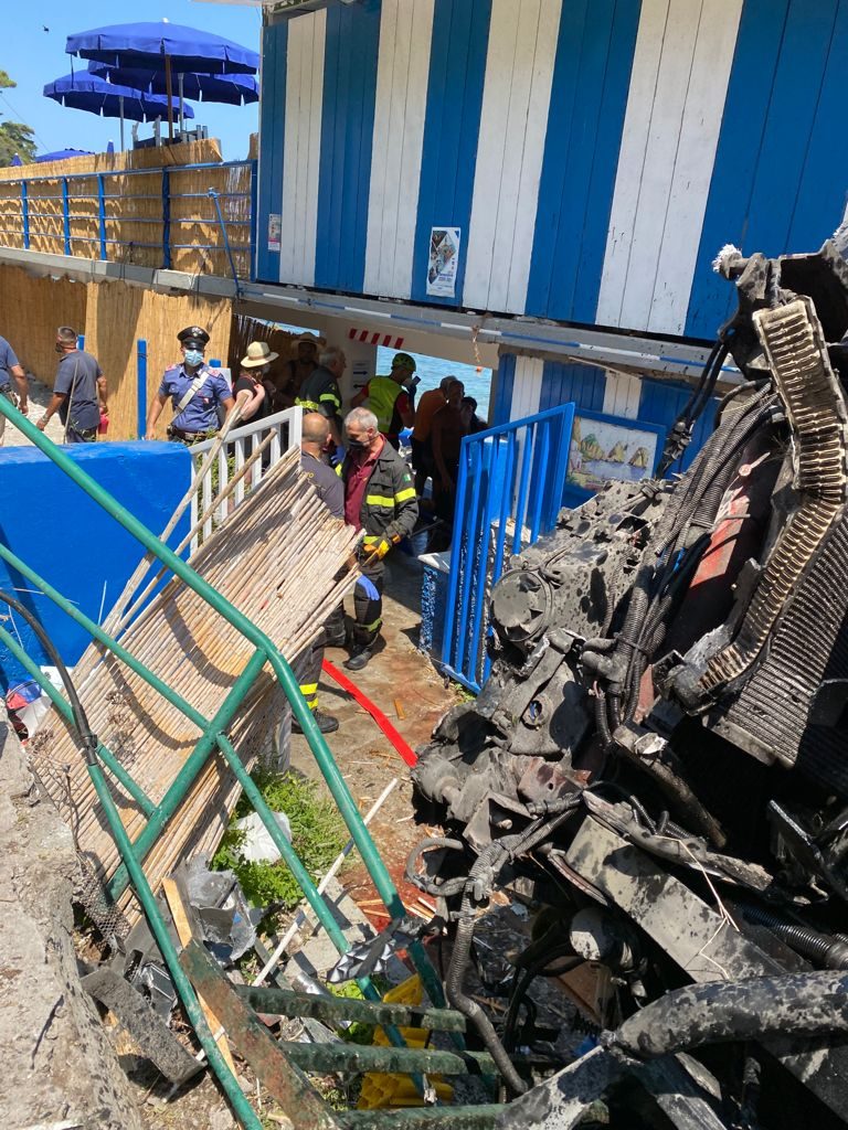 Capri, autobus di linea precipita in scarpata: le foto dei soccorsi